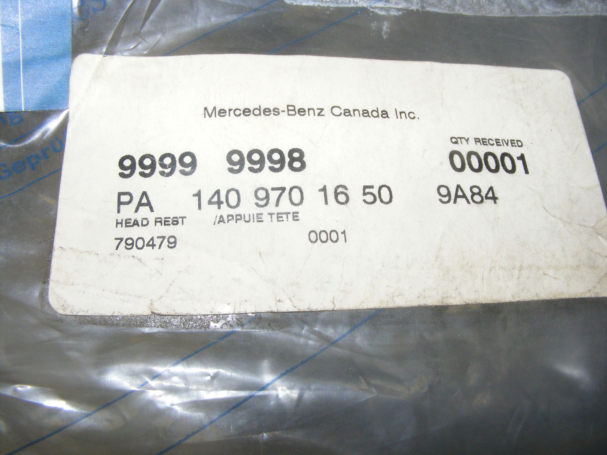 500sec 140070 600sec 140076 front seat head rest, color 9A84